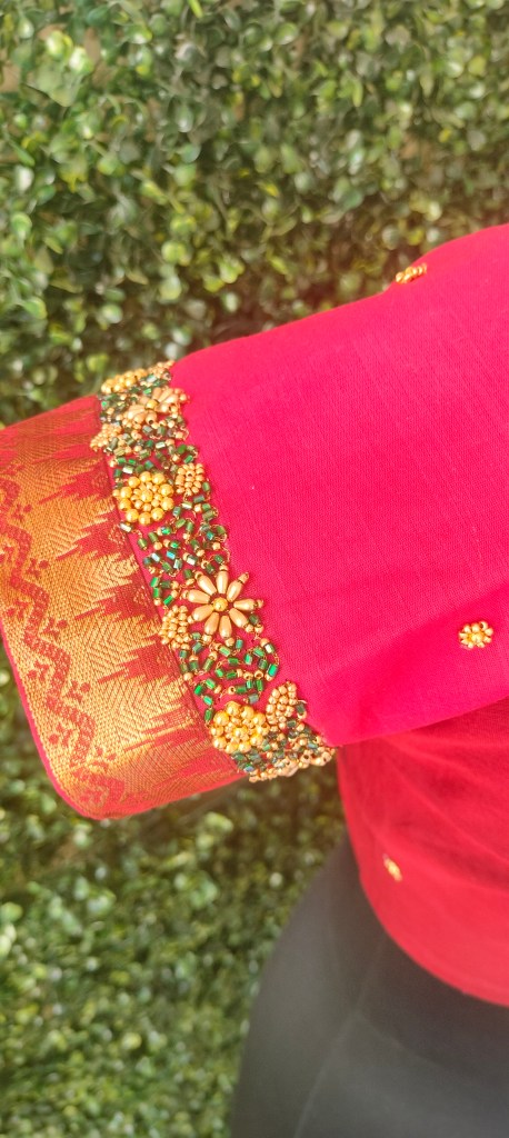 One of dev aari wrok’s bridal Blouse based on kardana beads and zari , it is delivered to customer with stitching within in Committed delivery period.