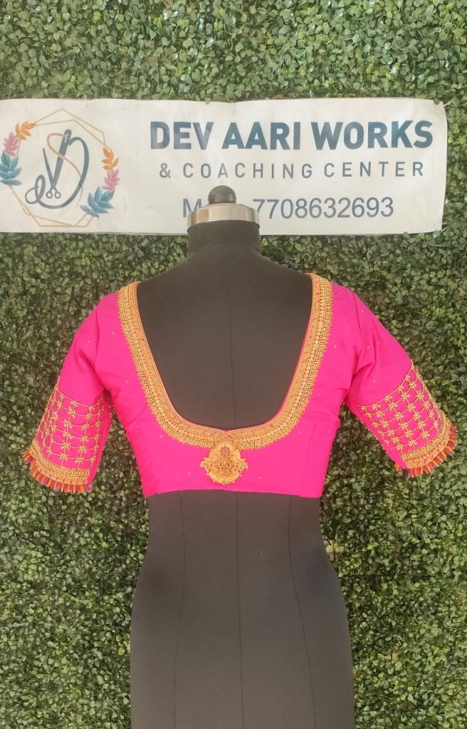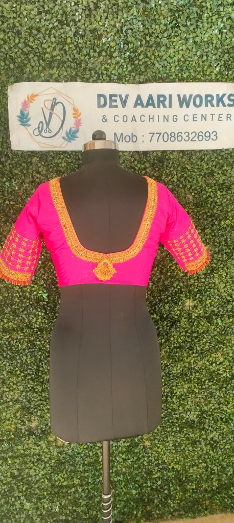 lakshmi pendant work Blouse design with tablet beads hanging done by dev aari works and coaching center, It gives very grand look work for any function , we are giving service for all over india with Quick time line. For quoted leave message on 7708632693 or you can also direct visit our location