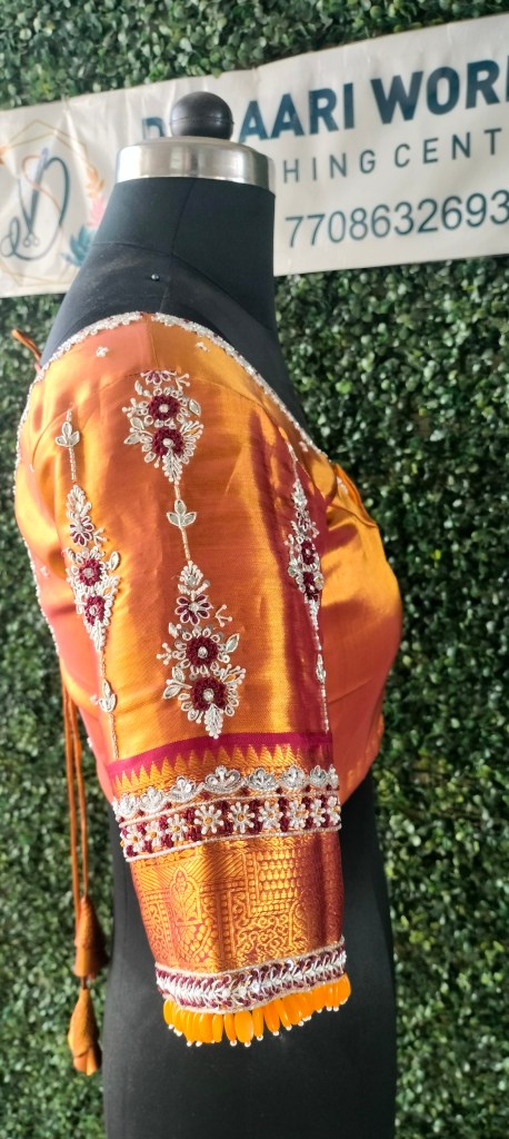 One of our new Client for their new house warming function we did grand Zardozi Based Silver zari work blouse within one week of time. After receiving they are very happy about our work and Quality.