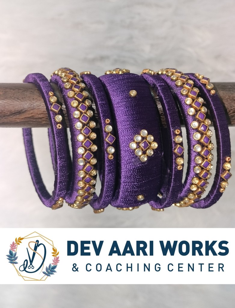 We are providing customized aari work bangles with Kundan Stone work and all types of beads work. Contact us for your order.