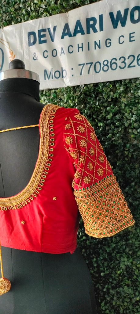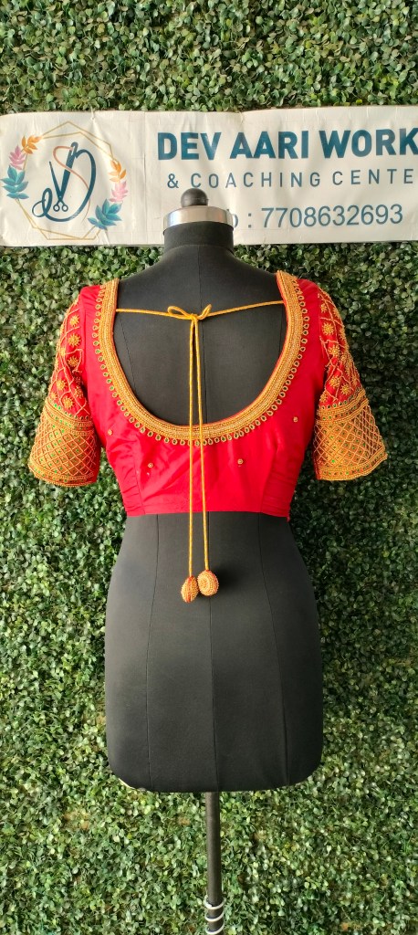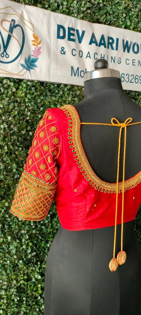 We are thrilled to share with you the first blouse created by our student, Sandhya, from Rajaji Nagar. Her exceptional work demonstrates dedication and creativity in mastering this aari work blouse. The intricate details and precise stitching in her design truly showcase her passion for learning and improving her skills. For further information about our courses and how you can unleash your creativity like Sandhya, please get in touch with us at 7708632693.