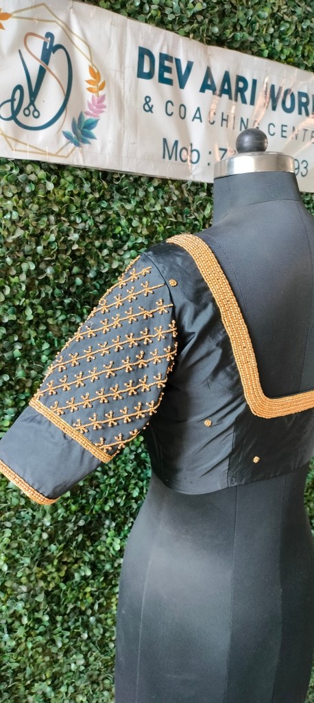 Witness the exquisite craftsmanship of our talented student Vaishnavi from Basavanagudi in this stunning blouse adorned with intricate Aari work. Impressing all with her remarkable skills, Vaishnavi managed to create this masterpiece within just 15 days of enrolling in our classes. The finesse and attention to detail displayed in her work are truly comparable to that of a seasoned artisan. For further information on our classes and to explore the endless possibilities of honing your own creative talents, contact us at 7708632693.