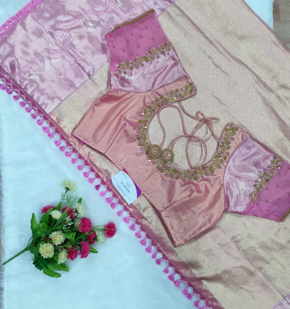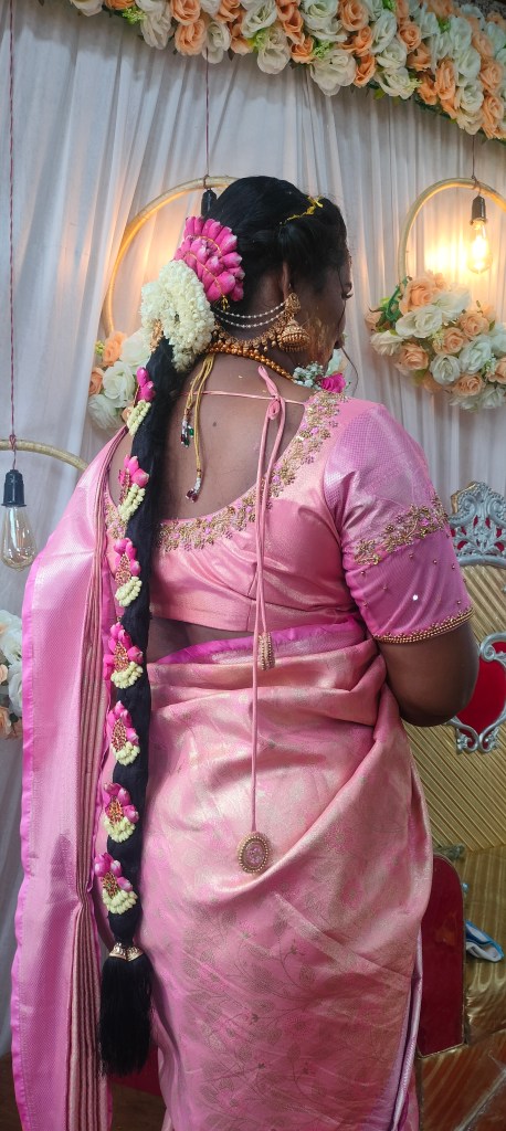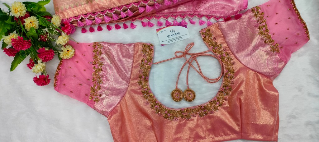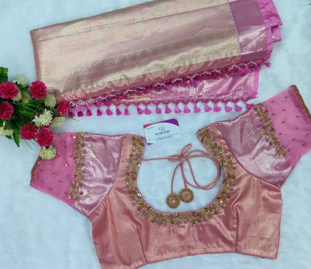 Dev Aari works specializes in crafting exquisite bridal blouses for engagement ceremonies. Our bespoke services include providing a complete package to the bride, consisting of intricately designed saree kuchu and meticulously handcrafted crochet saree pre-pleating. Elevate your special day with our personalized touch and attention to detail. For inquiries and orders, please contact us at 7708632693.