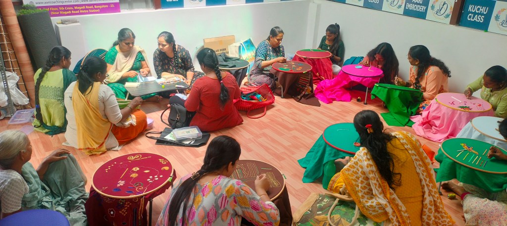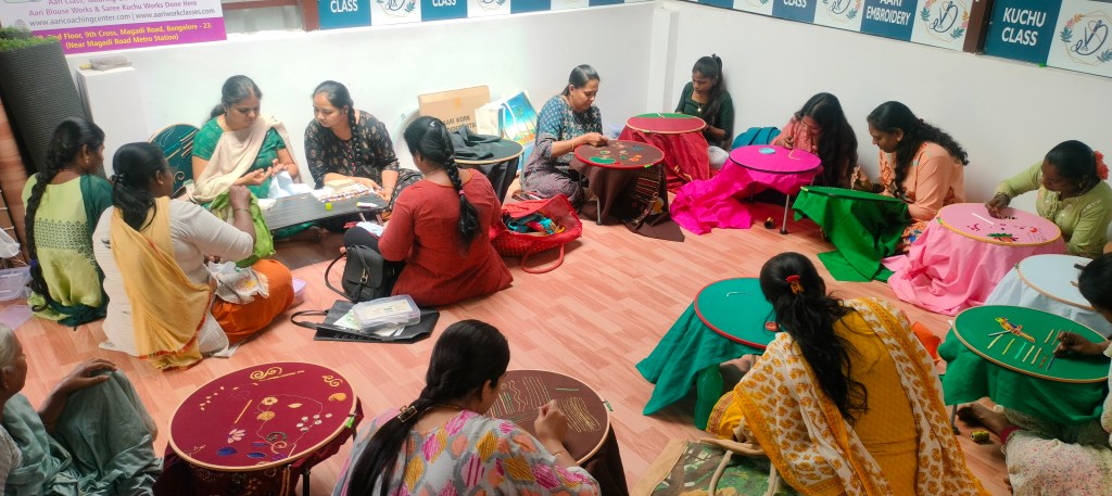 Our coaching center caters to the morning batch of students specializing in dev aari works. With separate classrooms designated as Class 1 and Class 2, we offer comprehensive training in aari embroidery techniques. For more information on our course curriculum and enrollment details, please feel free to reach out to us at 7708632693.