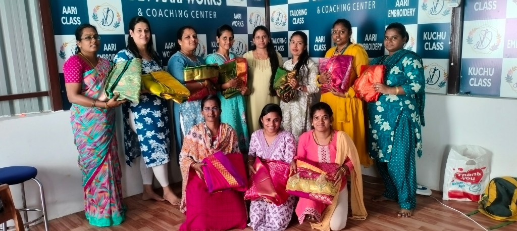 Dev Aari Works and Coaching Center offers a variety of classes and workshops tailored to those interested in learning the art of aari embroidery and tailoring. In addition to our popular aari embroidery classes and comprehensive tailoring lessons, we are now hosting special workshops focused on saree pre-pleating. These workshops are designed to help participants master the skill of neatly folding and arranging sarees, an essential technique in traditional Indian attire. Conveniently located near the Magadi Road Metro Station, our center is easily accessible for anyone interested in enhancing their skills in these traditional crafts. For further information regarding our aari work classes or to inquire about the saree pre-pleating workshop, please feel free to contact us at 7708632693. We look forward to helping you embark on your creative journey!