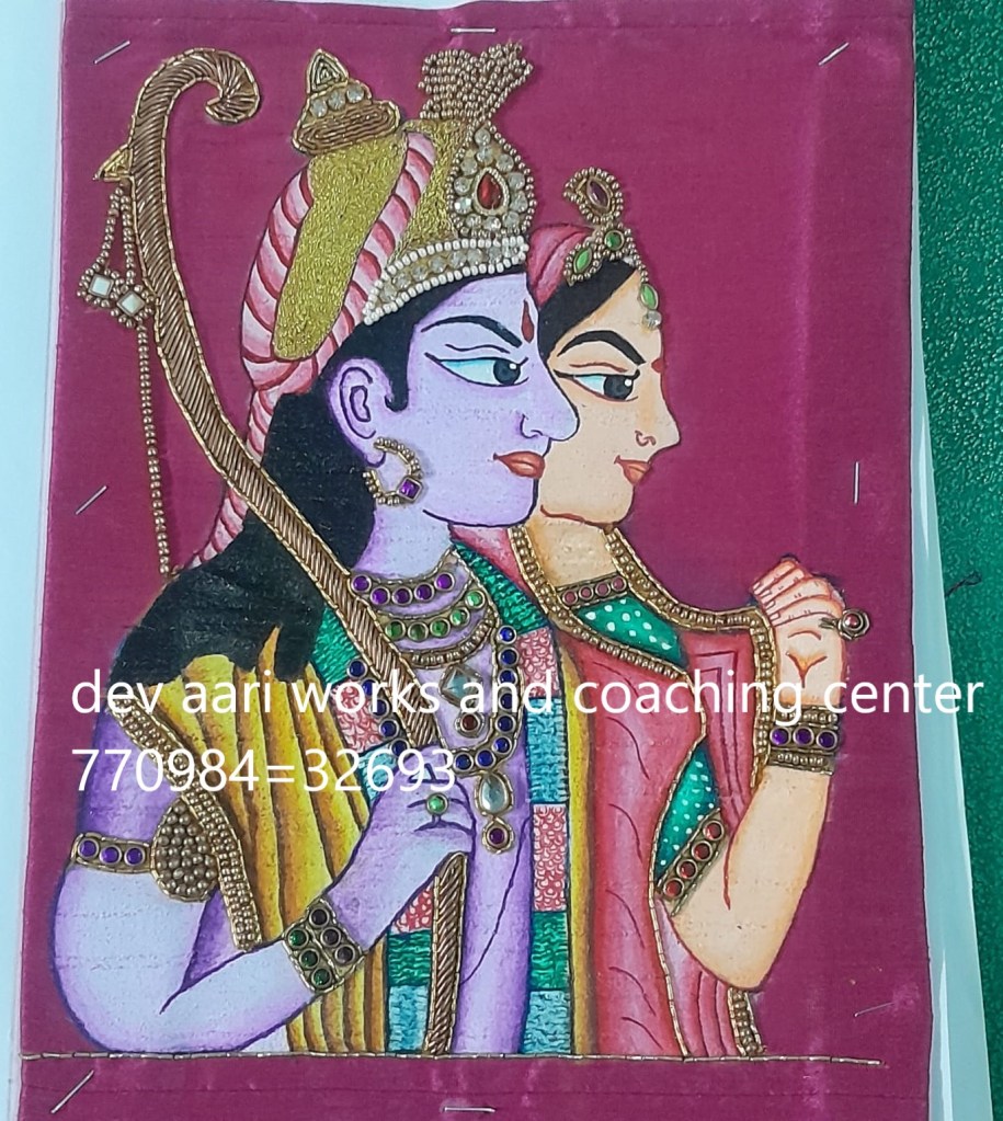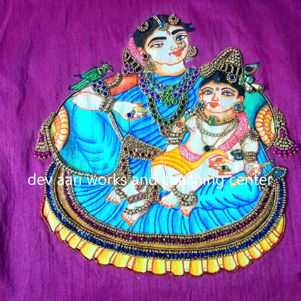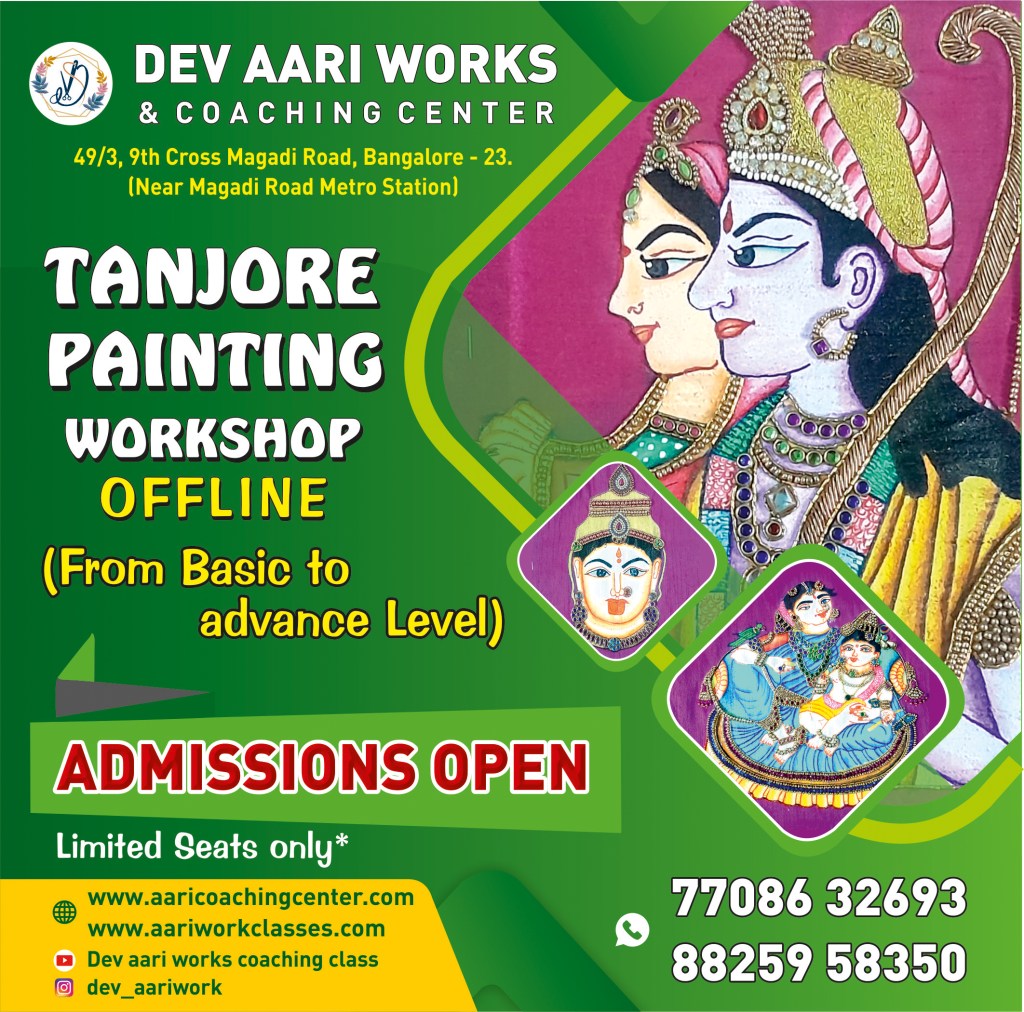 Dev Aari work and coaching center is now teaching Tanjore painting on fabric. The classes cover beginner to expert levels of this art form. Students will learn how to create these paintings on aari work fabrics. This mixes traditional art with unique textures. To learn more about the Tanjore painting course, please reach out to us. We can share details about class times, cost, and what you will learn. It is a great chance to learn a skill and make art.