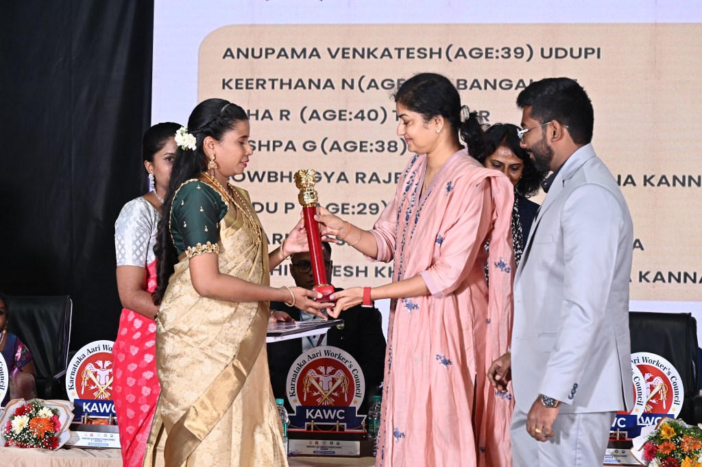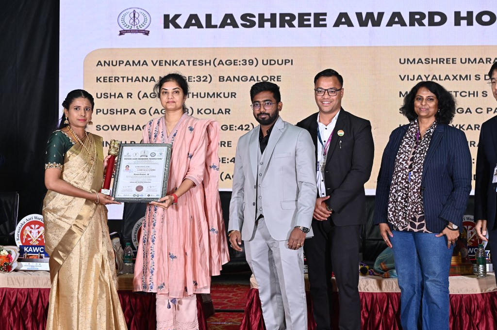 Her commitment to excellence was honored at the 2nd International Aari Workers Conference, where she received the Aari Kalashree Award, a testament to her exceptional contribution to both design and artisan training. Through her institute, Keerthana continues to empower women, nurture creativity, and uphold the timeless tradition of Aari embroidery in India.