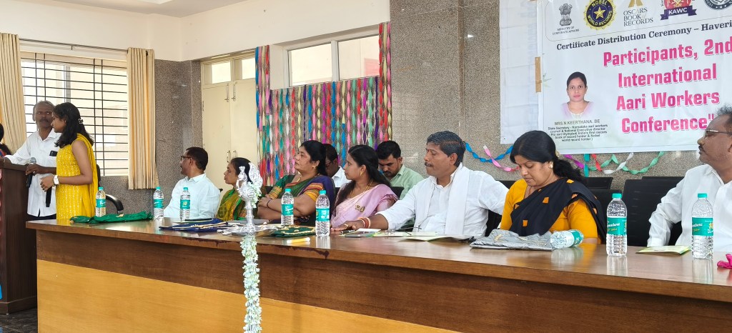 What a day in Haveri! As State Secretary for the Karnataka Aari Workers Council (KAWC), I was so happy to visit the district for a certificate distribution ceremony. It was a beautiful event, all thanks to our dedicated district secretary. Knowing that KAWC is part of the Indian Aari Workers Federation makes me feel so blessed to be part of this incredible journey. It’s a true honor to serve this talented community.