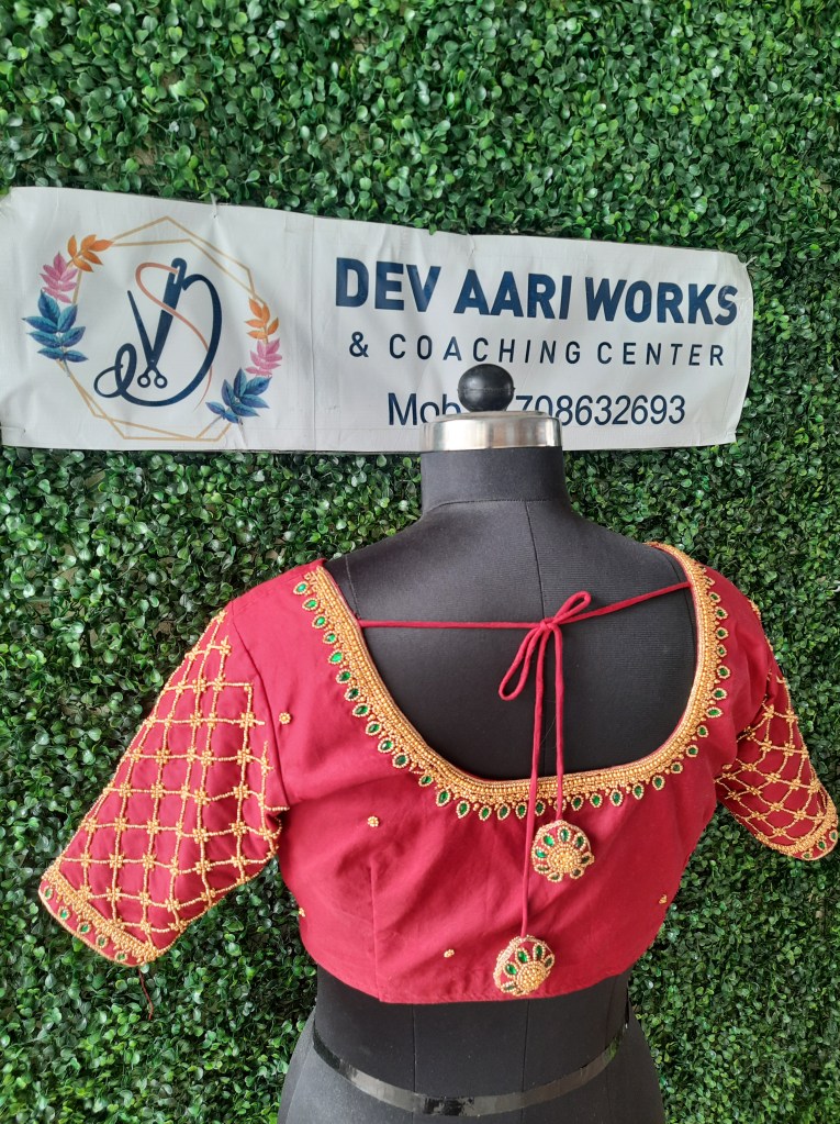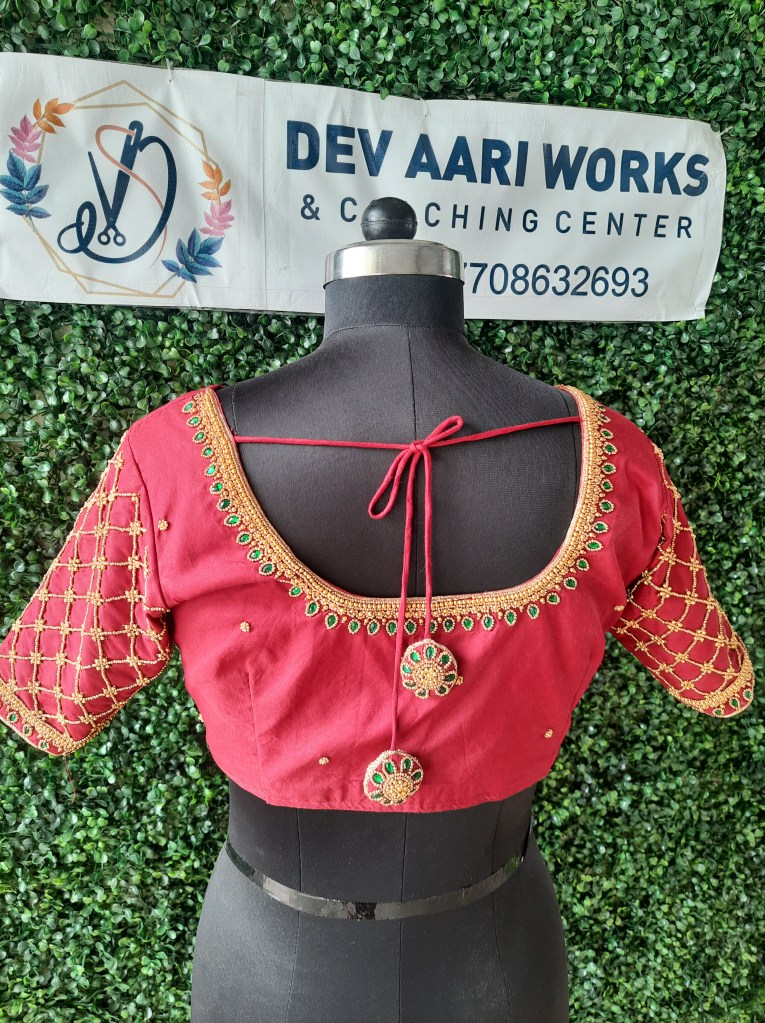 Dev aari works and coaching center gives best low cost and simple aari work designed blouse within one week across india service. We are one of the leading hand embroidery designer located in Bengaluru. we have more than 10+ group of team to complete Bulk aari embroidery blouse services.